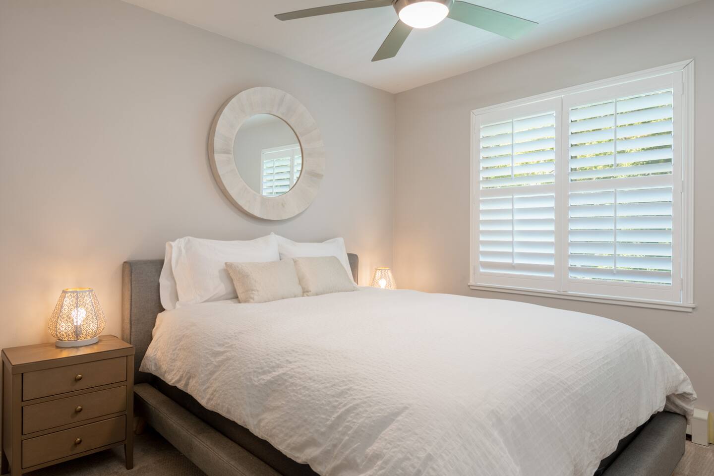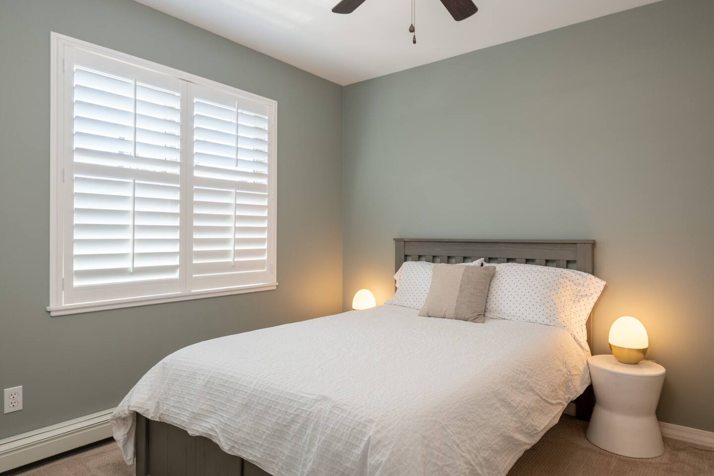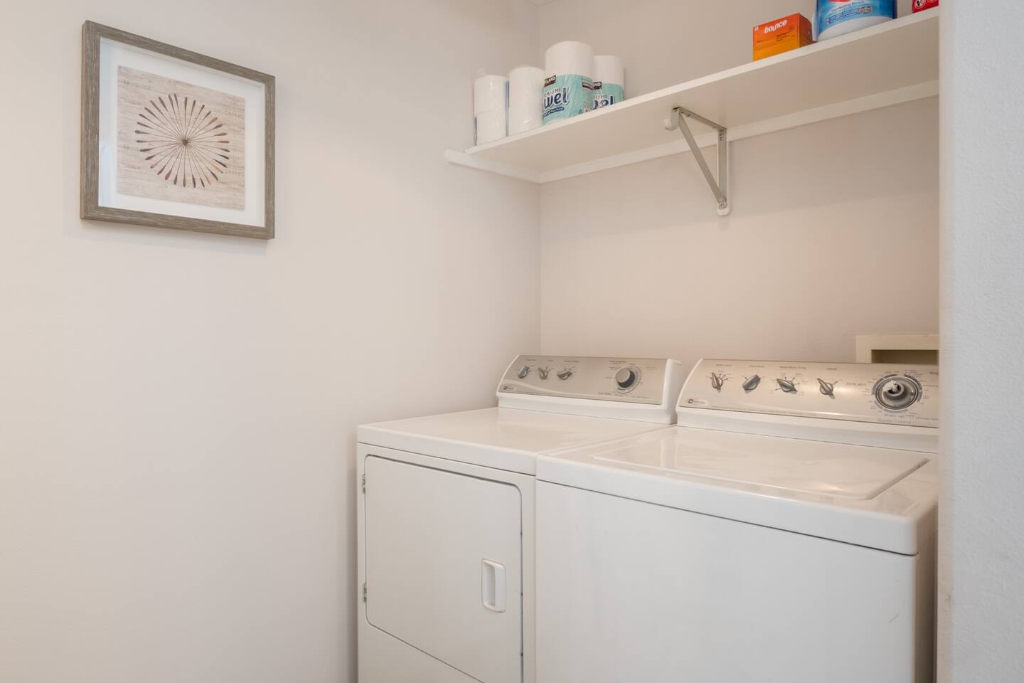 The unit has three bedrooms: one has a king-size bed, one has a queen-size bed, and one has a full-size bed. All bedrooms are located on the second floor. There is a full bath and a half bath. The kitchen is well stocked with all the essentials, and there is a welcoming patio area to enjoy.