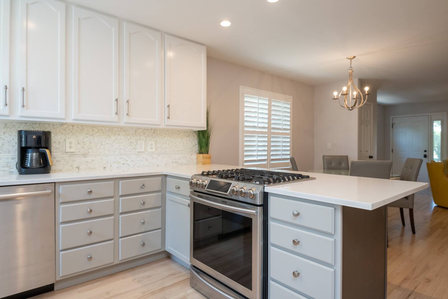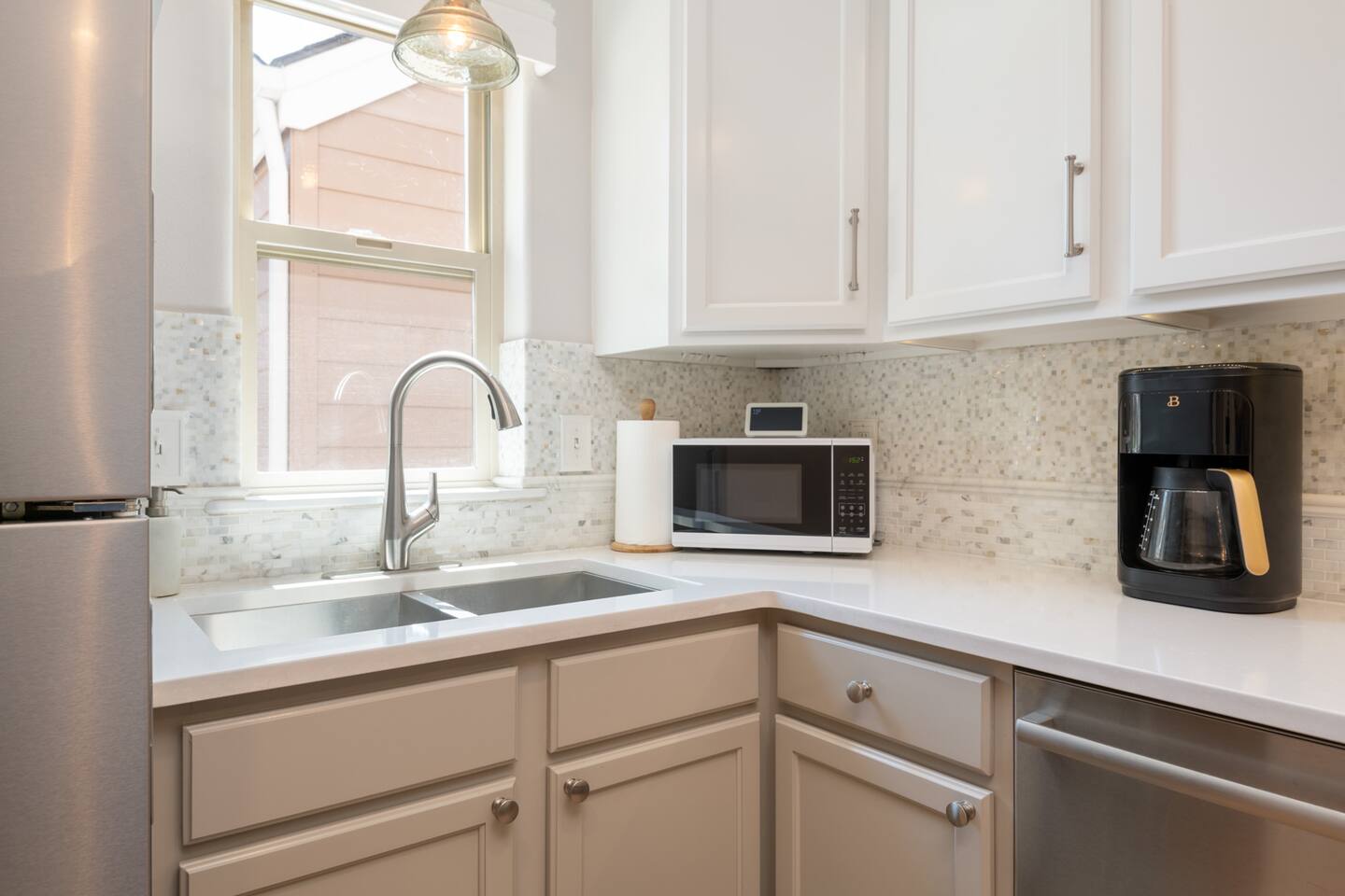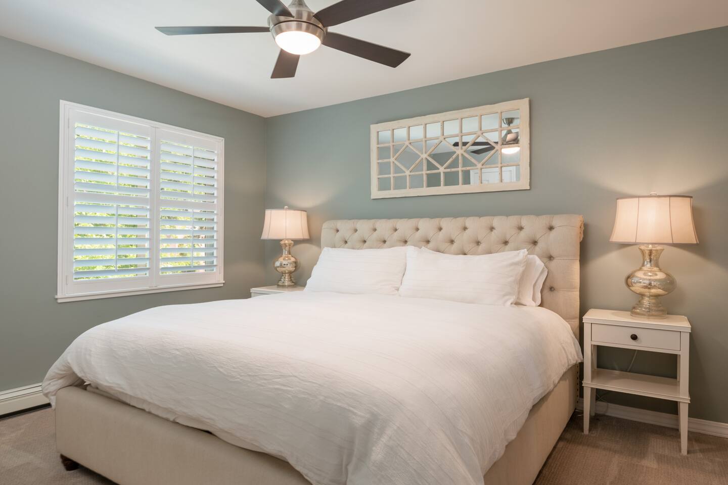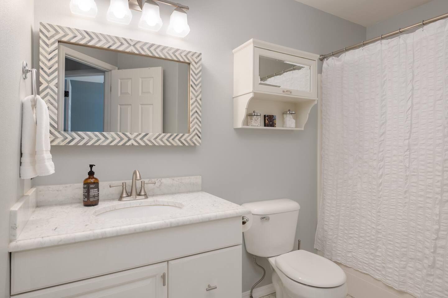 The unit has three bedrooms: one has a king-size bed, one has a queen-size bed, and one has a full-size bed. All bedrooms are located on the second floor. There is a full bath and a half bath. The kitchen is well stocked with all the essentials, and there is a welcoming patio area to enjoy.